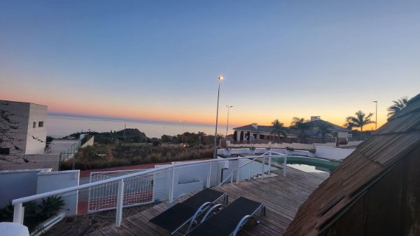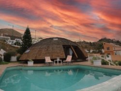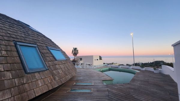 Magnifica casa haciendo esquina en zona segura y tranquila con buenas conexiones, restaurantes, supermercado, farmacia, etc. Piscina con maravillosas vistas hacia el mar. El iglú por dentro tiene dos plantas. Separado de el iglú, en la parte de abajo tiene un garaje para dos coches, una habitación con baño propio y oficina. Taller grande de herramientas.